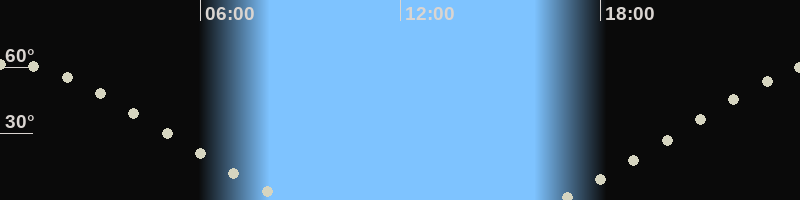 Höchster Stand (Kulmination)00:12 Uhr (h=61.4°)