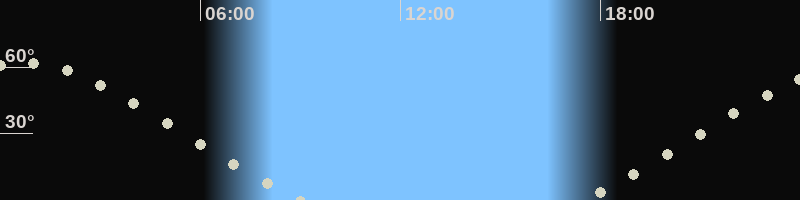 Höchster Stand (Kulmination)00:41 Uhr (h=61.9°)
