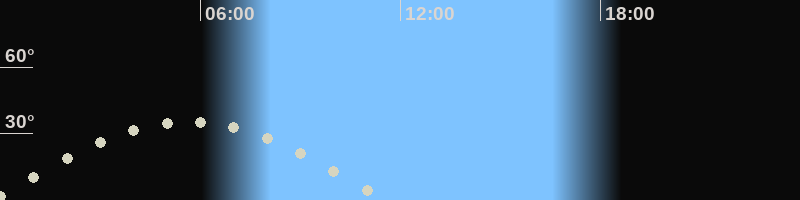 Monduntergang11:30 Uhr im Westen (αAz = 262.7°)