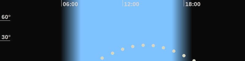 Höchster Stand (Kulmination)14:08 Uhr (h=23.3°)