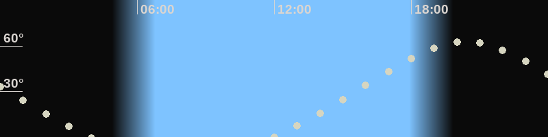 Höchster Stand (Kulmination)20:22 Uhr (h=62.9°)