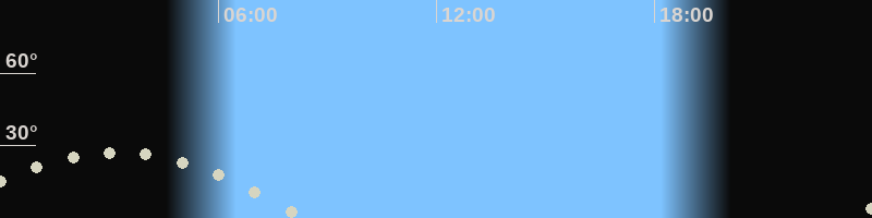 Monduntergang08:22 Uhr im Westen (αAz = 250°)