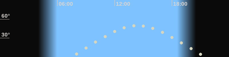 Höchster Stand (Kulmination)14:19 Uhr (h=49.5°)