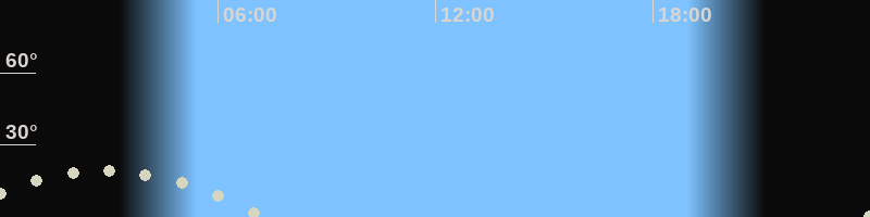 Monduntergang07:18 Uhr im Südwesten (αAz = 237.1°)