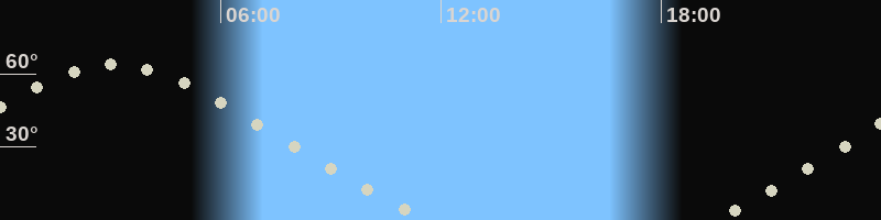 Höchster Stand (Kulmination)03:04 Uhr (h=63.7°)