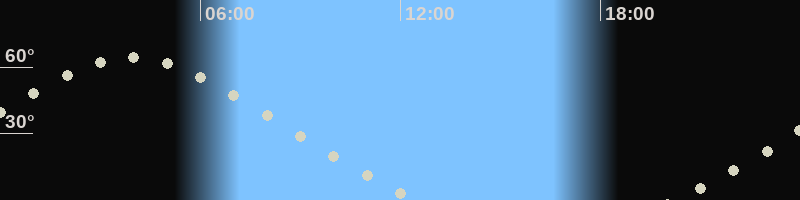 Höchster Stand (Kulmination)03:54 Uhr (h=64.3°)