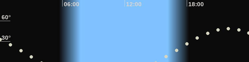 Höchster Stand (Kulmination)21:55 Uhr (h=48.5°)