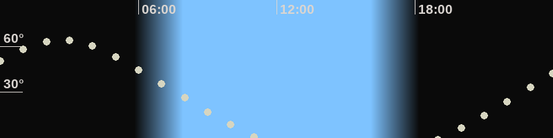 Höchster Stand (Kulmination)02:39 Uhr (h=64.2°)