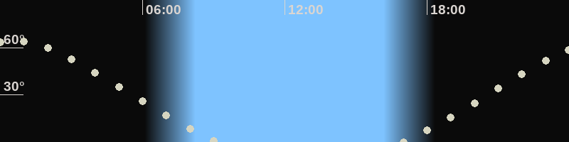 Höchster Stand (Kulmination)00:32 Uhr (h=64.3°)