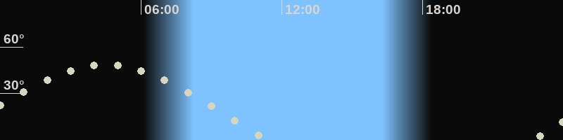 Höchster Stand (Kulmination)04:32 Uhr (h=48.7°)