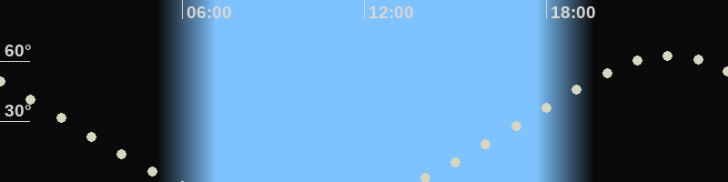 Höchster Stand (Kulmination)22:04 Uhr (h=62.9°)