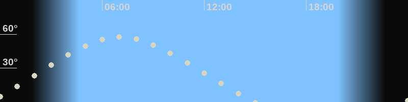 Höchster Stand (Kulmination)07:00 Uhr (h=57.4°)