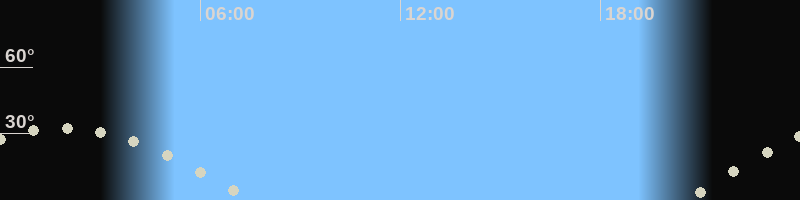 Monduntergang07:29 Uhr im Westen (αAz = 261.8°)