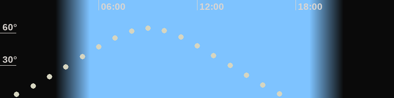 Höchster Stand (Kulmination)09:03 Uhr (h=64.5°)