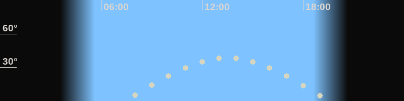 Höchster Stand (Kulmination)13:33 Uhr (h=38.8°)