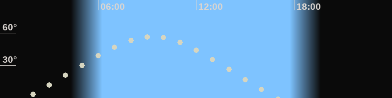 Höchster Stand (Kulmination)09:20 Uhr (h=56.8°)