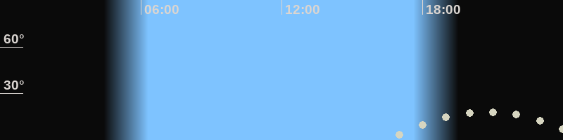 Monduntergang23:36 Uhr im Südwesten (αAz = 229.9°)