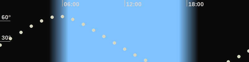 Höchster Stand (Kulmination)05:39 Uhr (h=66.3°)