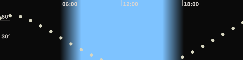 Höchster Stand (Kulmination)01:11 Uhr (h=66.6°)