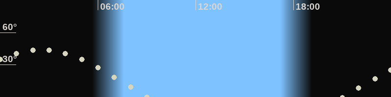 Höchster Stand (Kulmination)02:33 Uhr (h=44.5°)