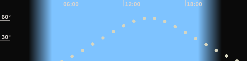 Höchster Stand (Kulmination)14:22 Uhr (h=63.5°)