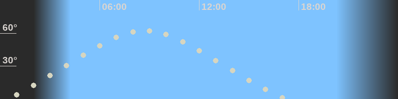 Höchster Stand (Kulmination)08:38 Uhr (h=62.3°)