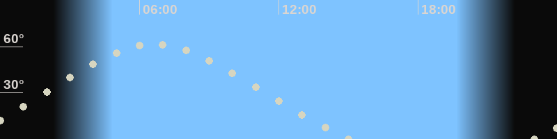 Höchster Stand (Kulmination)06:34 Uhr (h=61.3°)