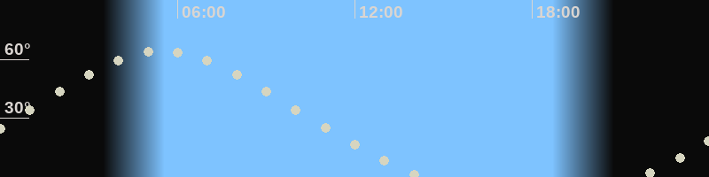 Höchster Stand (Kulmination)05:25 Uhr (h=64.2°)