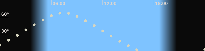 Höchster Stand (Kulmination)07:23 Uhr (h=67.3°)