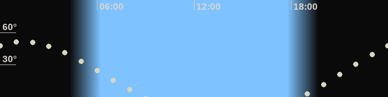 Höchster Stand (Kulmination)01:21 Uhr (h=51.3°)