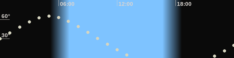 Höchster Stand (Kulmination)05:02 Uhr (h=65.5°)