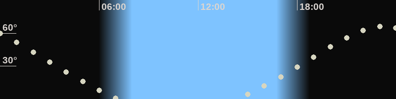 Höchster Stand (Kulmination)23:11 Uhr (h=66.3°)