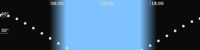 Höchster Stand (Kulmination)00:09 Uhr, (h=63.4°)