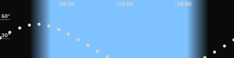 Monduntergang11:15 Uhr im Nordwesten (αAz = 294.6°)