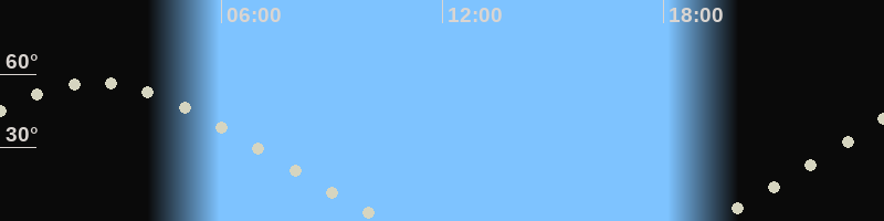 Höchster Stand (Kulmination)02:29 Uhr (h=56.4°)