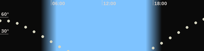 Höchster Stand (Kulmination)00:16 Uhr, (h=53.5°)