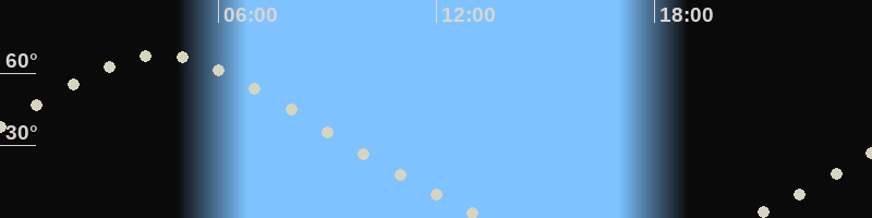 Höchster Stand (Kulmination)04:22 Uhr (h=67.5°)