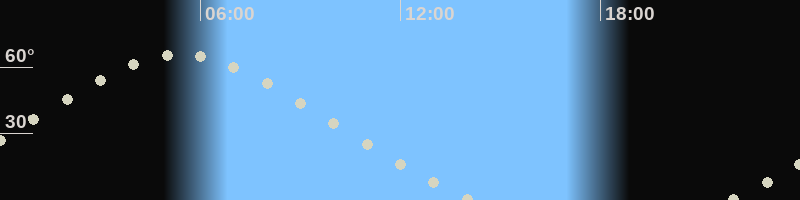 Höchster Stand (Kulmination)05:24 Uhr (h=65.9°)