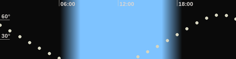 Höchster Stand (Kulmination)22:22 Uhr (h=67.3°)