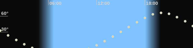 Höchster Stand (Kulmination)20:05 Uhr (h=66.4°)