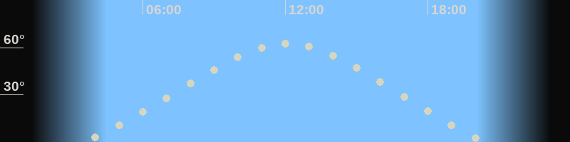 Höchster Stand (Kulmination)12:04 Uhr (h=62.7°)
