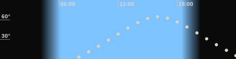 Höchster Stand (Kulmination)16:01 Uhr (h=64.6°)