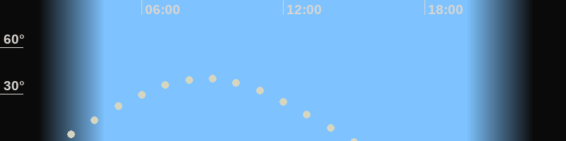 Höchster Stand (Kulmination)08:34 Uhr (h=39.8°)