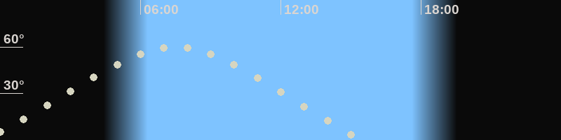 Höchster Stand (Kulmination)07:30 Uhr (h=60.2°)