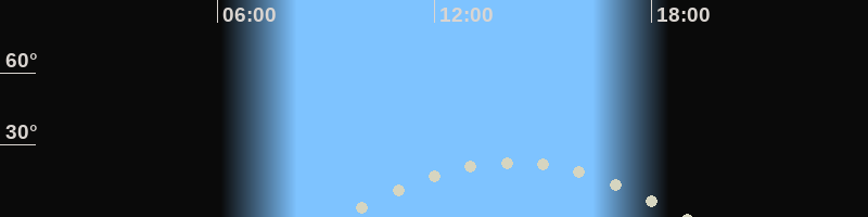 Höchster Stand (Kulmination)14:05 Uhr (h=22.5°)