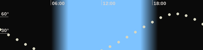 Höchster Stand (Kulmination)20:44 Uhr (h=65.4°)