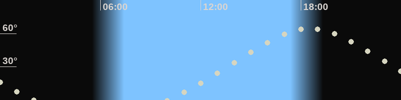 Höchster Stand (Kulmination)18:30 Uhr (h=64.5°)