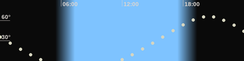 Mondaufgang11:32 Uhr im Nordosten (αAz = 44.3°)