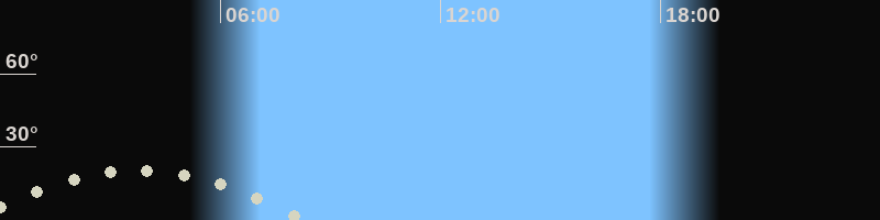 Monduntergang08:18 Uhr im Südwesten (αAz = 239°)