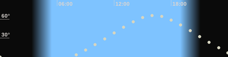 Höchster Stand (Kulmination)16:09 Uhr (h=65.9°)